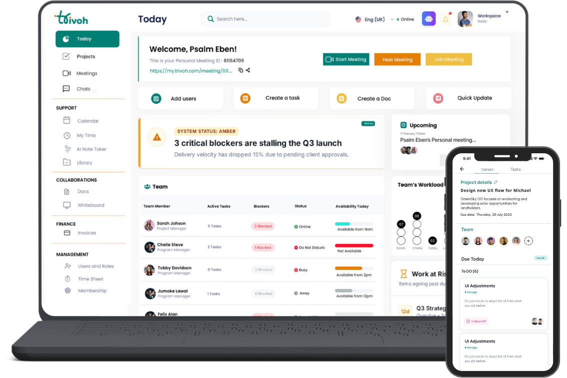 Trivoh is built to scale with businesses, supports self–hosting for full data sovereignty, and uses end-to-end encryption to meet enterprise security expectations. It also helps organisations reduce misalignment and operational inefficiency across distributed teams, without the overhead and cost that often comes with fragmented tools.